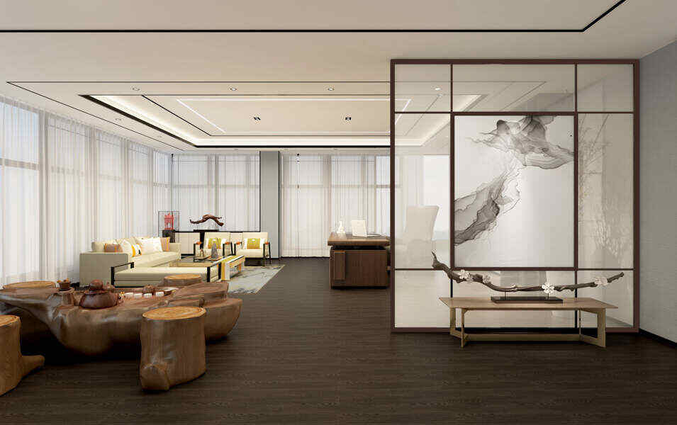 设计介绍:主要展示前台、洽谈区、走廊、贵宾区、会议室、办公区等各个区域实物图,设计师们采用现代简约风格办公室设计,主要以白色为主,蓝色更符合智能化科技的公司形象,通过几何图形与条纹装饰打造科技智能的办公空间。