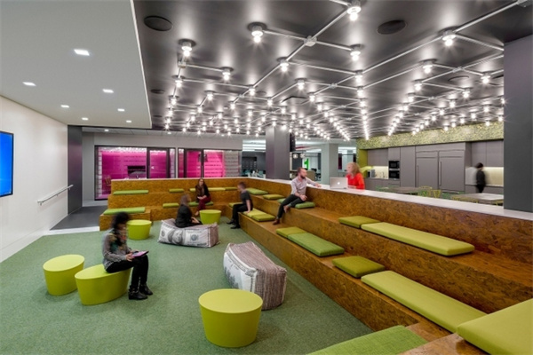 国外新媒体传媒公司办公室装修:设计团队选择以纽约作为其办公室设计的灵感来源,来打造出一个像这座繁忙的国际化大都市一样,既年轻时尚又动感活力的办公空间。宽敞的空间被划分成四个相邻的不同区域。考虑到许多为了逃离这座过于喧嚣的城市,而专门到汉普顿斯度假的纽约人,设计师还为员工们设置了像图书馆一样安静的环境。
